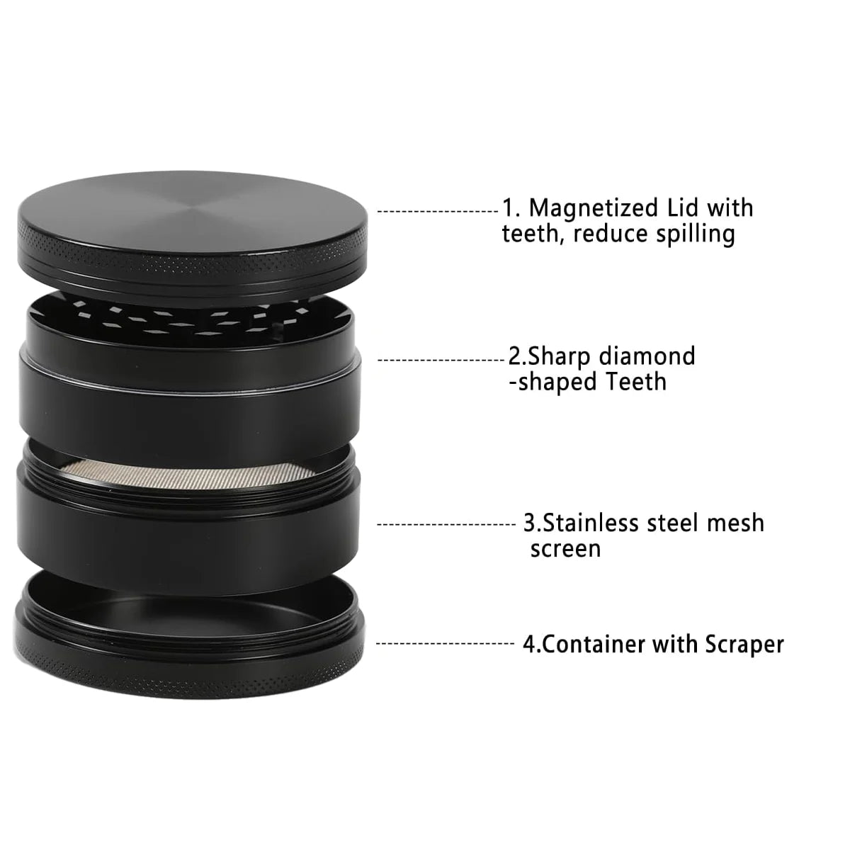 The Grinder features precision-milled aluminum construction with a 4-piece design and pollen catcher, giving you a smooth, consistent grind every time. Diameter: 2 inches.